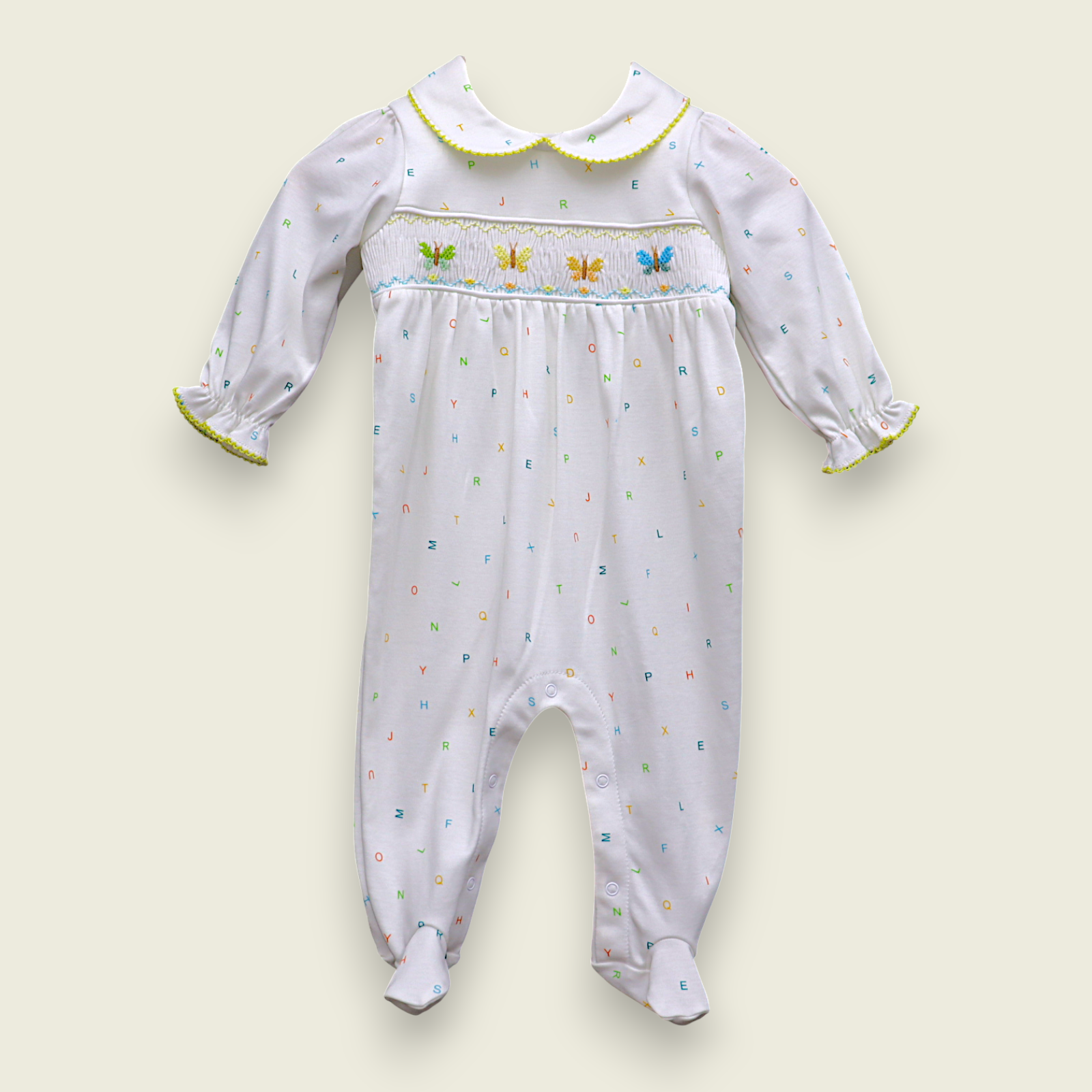 Macacão Smock Borboletas Coloridas - Letras Coloridas
