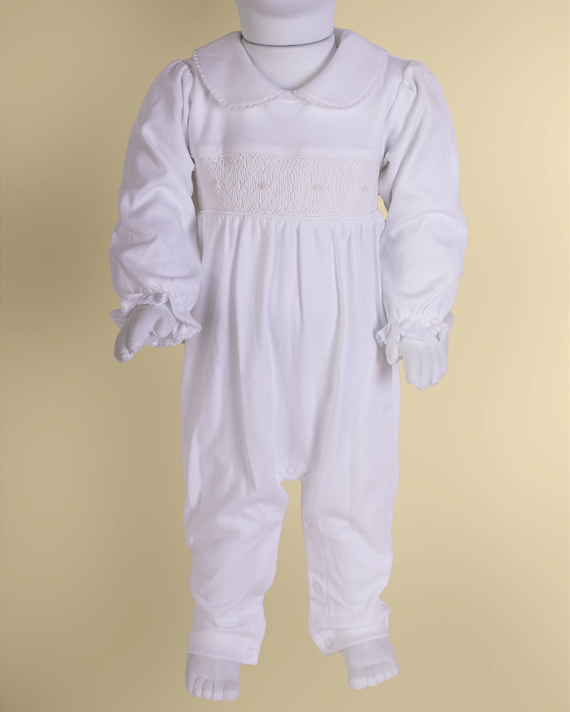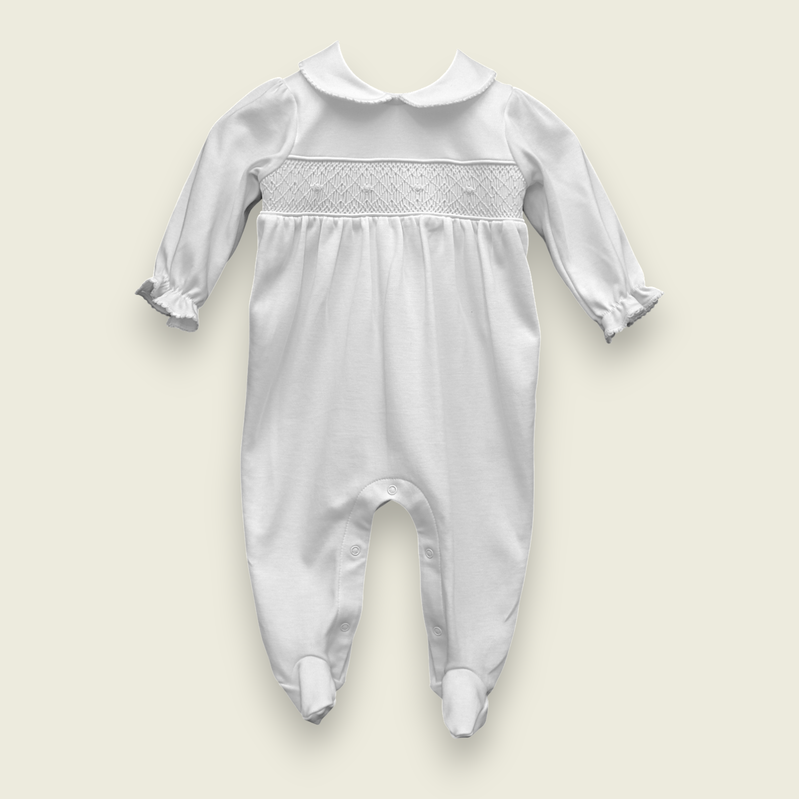 Macacão Smock Bordado Branco Menina - Branco Liso