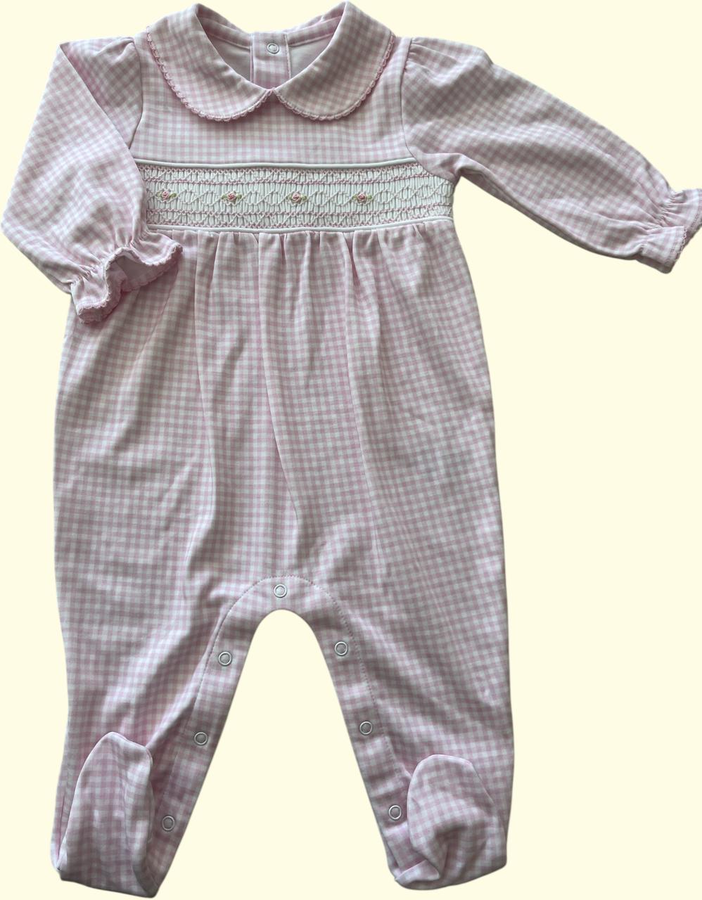 Macacão Smock Florzinha Rosa com Losango - Xadrez Rosa