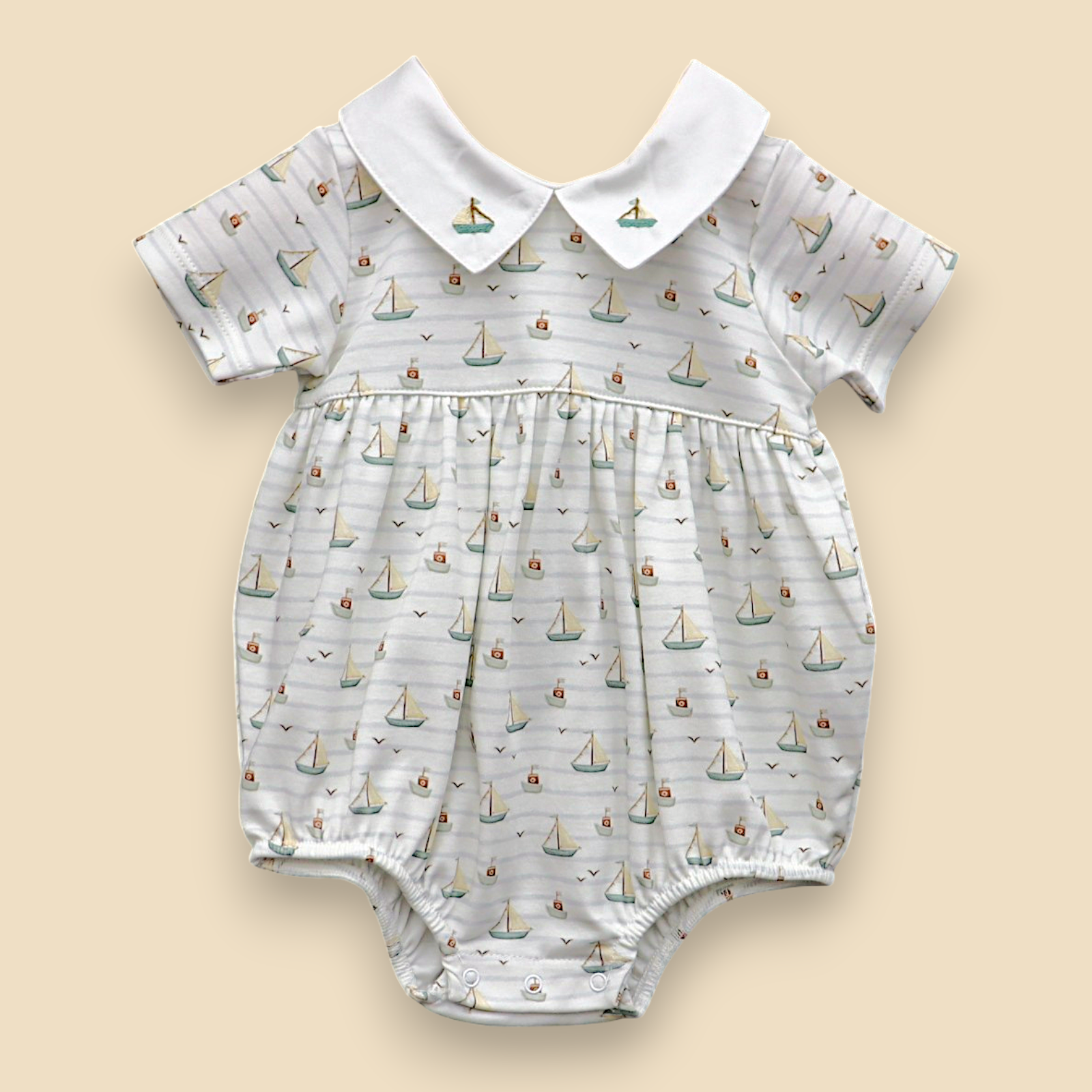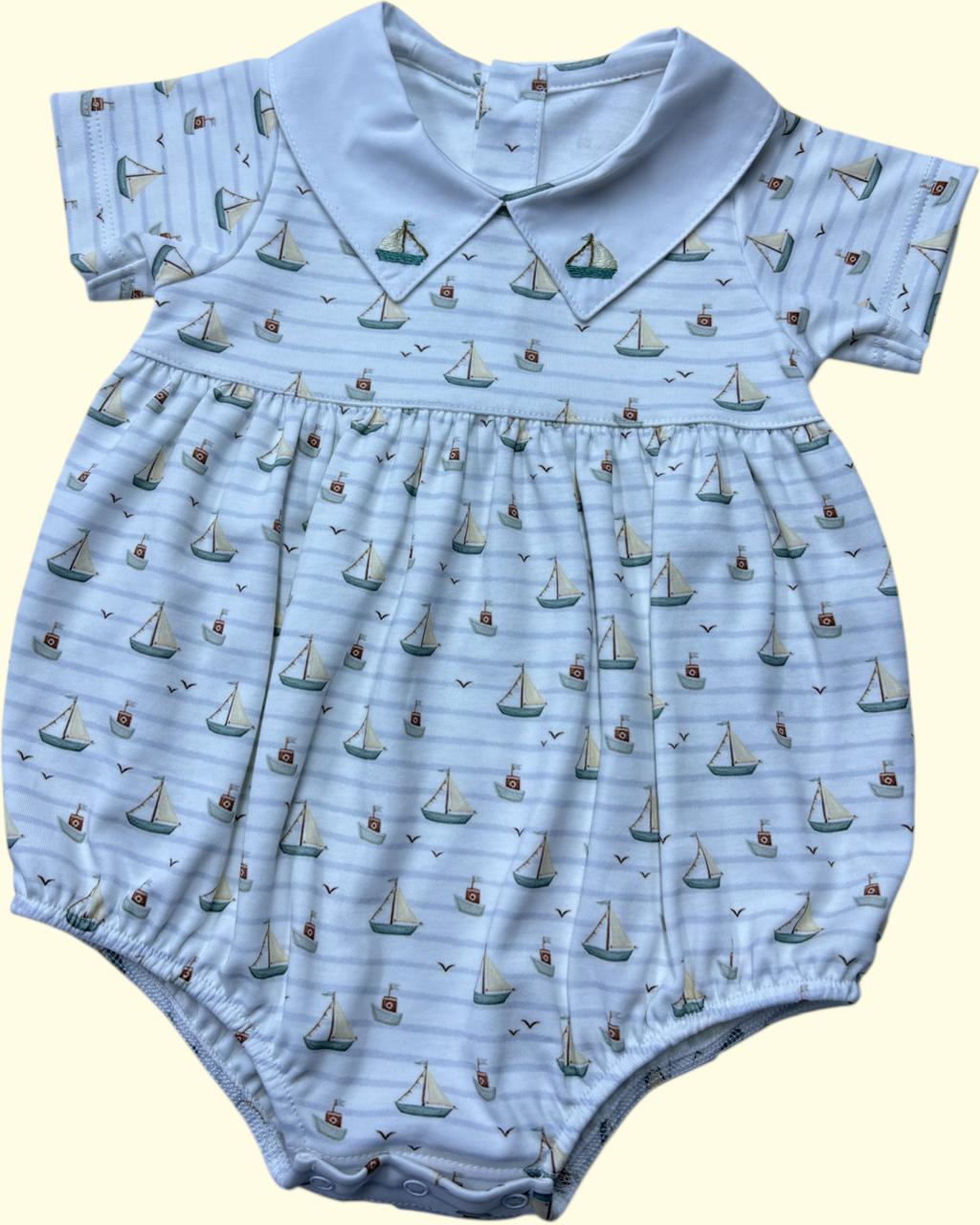 Macaquinho Body Barcos e Gaivotas - Gola Branca com Barco