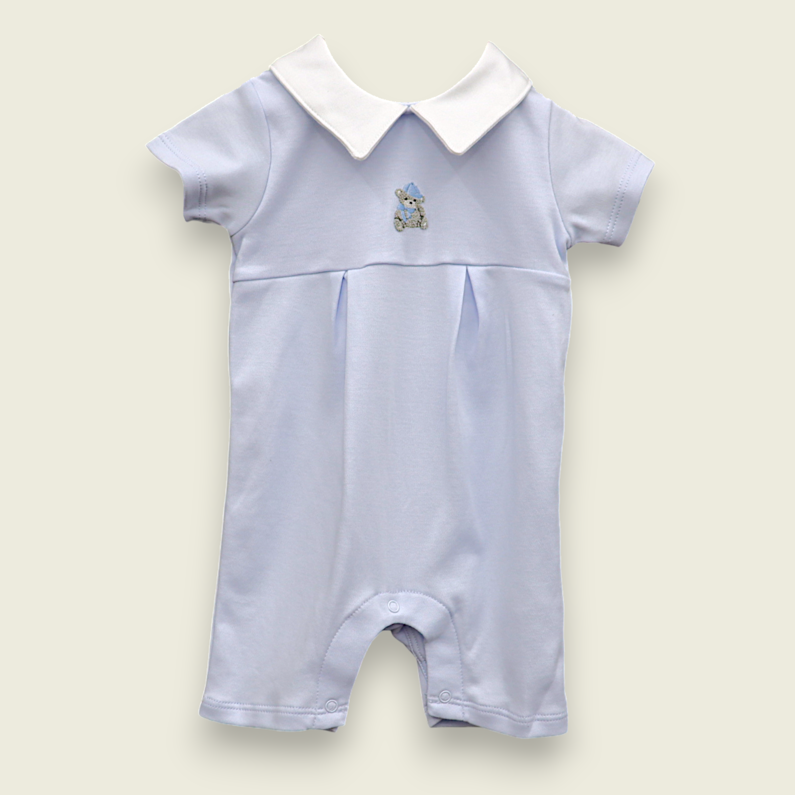 Macaquinho Bordado Ursinho Azul Celeste - Celeste Liso Gola Branca